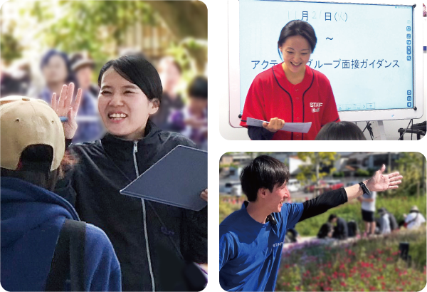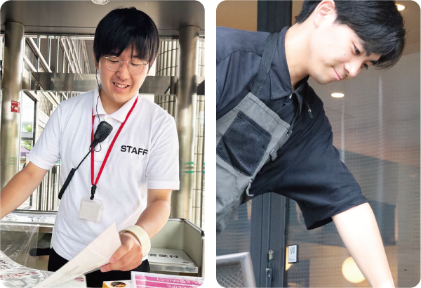 コンサートやスポーツ、テーマパーク…。関西のあらゆる会場で、私たちの仲間が活躍しています。お客様が笑顔になる瞬間。